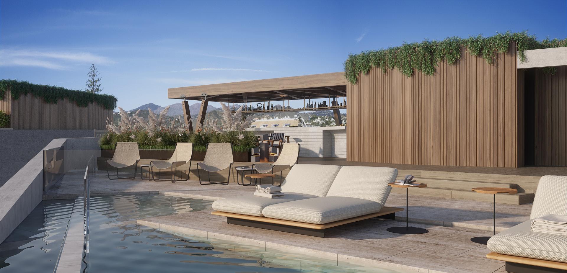 Golden Mile: State-of-the-art penthouse with a private pool within a 5-star gated community, just steps from the beach. 3 beds, 3 baths, living area approx. 142 m², terrace approx. 270 m². Price: €3,975,000, E&V ID W-02XXG9.