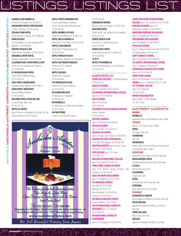 San Pedro. Tel: 952 778 492 Marbella. Tel: 952 822 191 Nueva Andalucía. Tel: 952 908 558 Estepona. Tel: 952 794 059