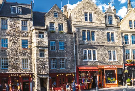 Gladstone’s Land was an earlier seventeenthcentury tenement building favoured by the wealthier residents of the Old Town. Brodie’s Close was the home of Deacon Brodie upon whom Robert Louis Stevenson based his character, Dr Jekyll and Mr Hyde. Brodie was a carpenter and respected city councillor by day and by night, using wax impressions of the locks of the houses he visited in his professional capacity, he returned to burgle them. John Knox’s House jutting out into the Canongate is Edinburgh’s oldest building dating as far back as 1490. At the foot of the Royal Mile, you find the resplendent Holyrood Palace. On return to her homeland, Mary, Queen of Scots set up court here. In 1603 her son, James VI, with the Union of the Crowns inherited the English throne and moved his Scottish court to London. In some ways, this was the end of the Scottish monarchy as, despite his promises, James only returned once to his native land. At this end of the Royal Mile, you’ll also find the Scottish Parliament, a