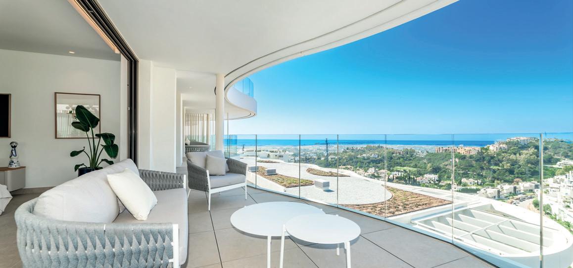 La Quinta : Modern luxury apartment with oustanding sea and golf views, within a gated community with high-end amenities. 3 beds, 3 baths, living area approx. 148 m2 , terrace approx. 44 m2 . Price: 1,695,000 €, E&V ID: W-02VFTI
