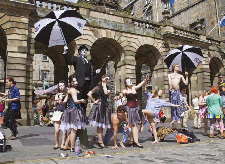 performances per festival. The Festival was started in 1947 to help shake off the gloom of the post war years and with several names of international stature supporting it, the new festival got off to a good start. The Fringe started at the same time and is now the world’s largest arts festival with over 500 performances each day supported by 450 companies. During this time, the Military Tattoo is held every night in the Castle Esplanade. ›