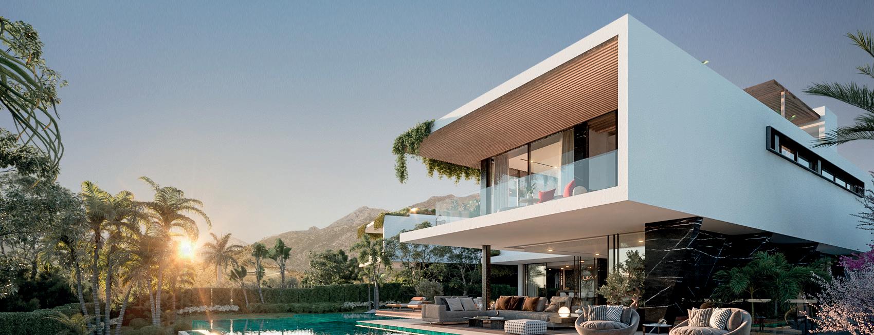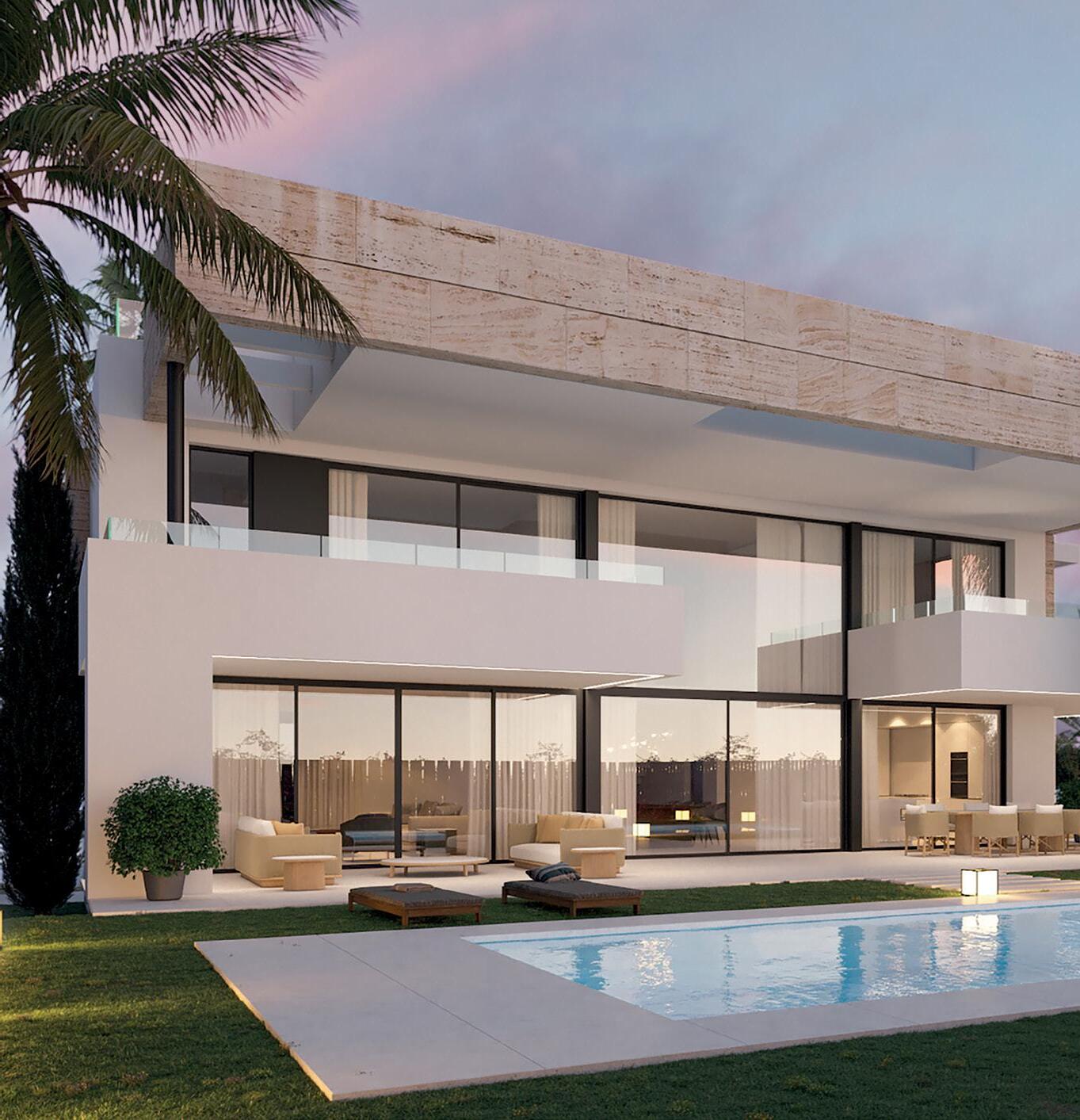 Río Real: Avant-garde luxury villa situated in a privileged location with sea views. 4 beds, 5 baths, built area approx. 830 m2 , plot approx. 1.250 m2 .