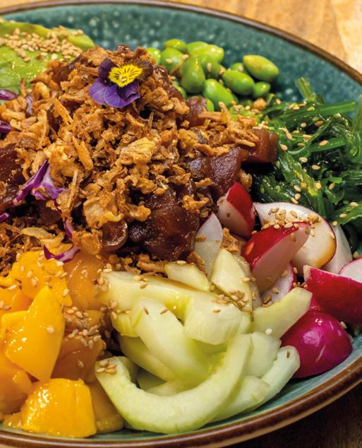 basmati rice, and a tasty Poke Bowl of Tuna marinated in ponzu of spicy soya, with avocado, mango, wakame, edamame, radish, crunchy onion, sesame seeds and quinoa, really hit the spot making it obvious why SOUL is the place to EAT, PLAY, CONNECT.