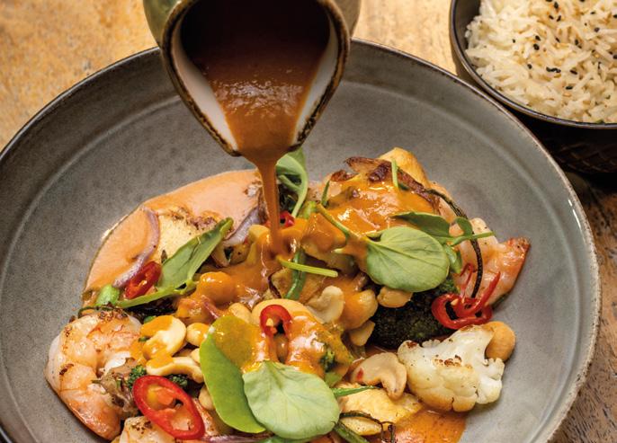 Our main course selections of Roasted Sea Bass Fillet with baby potatoes and asparagus, Slow-Cooked Beef Brisket marinated in Yakiniku sauce, Panang Curry with cashews, coconut milk and prawns accompanied by ›