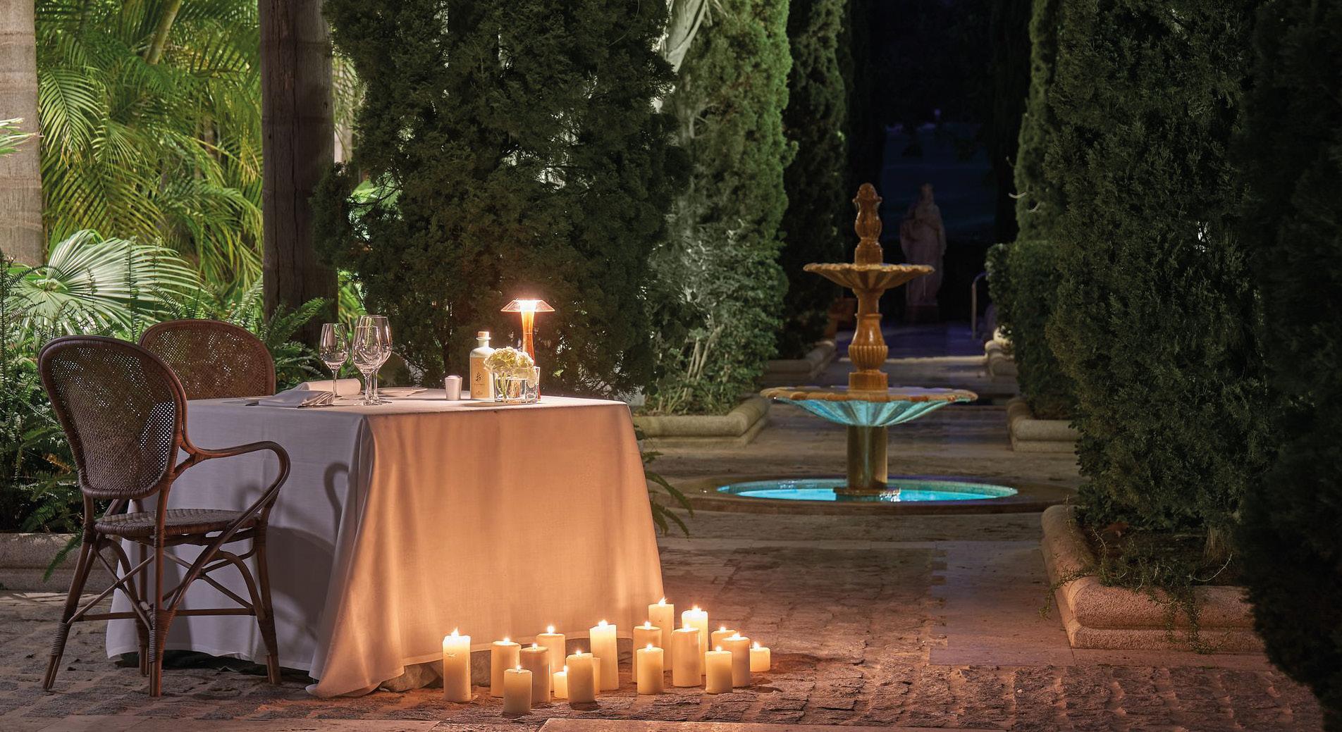 Enjoy your dinner under the stars, surrounded by candlelights and the sound of the fountains in our gardens.