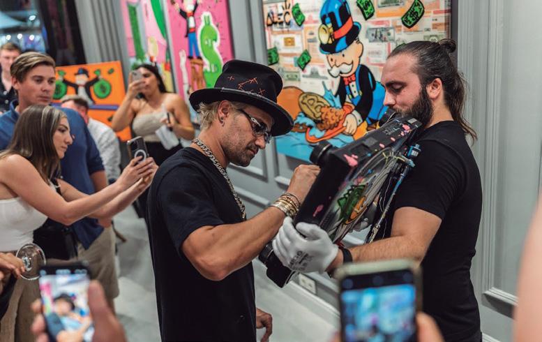 Twisted Art Gallery in Puerto Banús recently hosted a solo exhibition of works by superstar artist, Alec Monopoly, dazzling art lovers with over 40 pieces for one night only. Guests met and interacted with the artist, who was visiting Marbella for the first time. Twisted Art Gallery exhibits Monopoly’s works all year round, alongside those of 20 other artists.