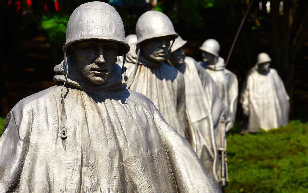 When the 1,000-pound statues are reflected on the granite wall, there appear 38 soldiers, which represents the 38th parallel, the dividing line of North and South Korea during the conflict.