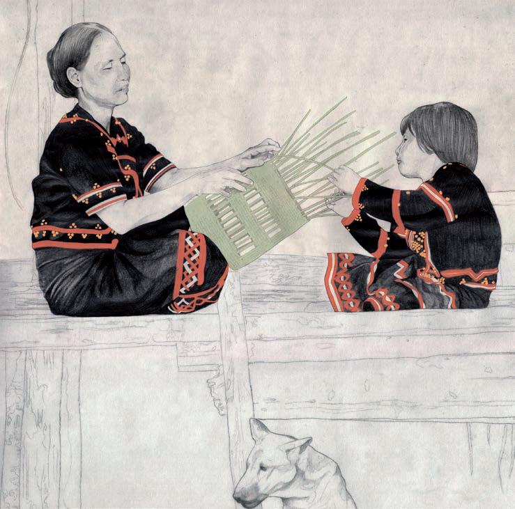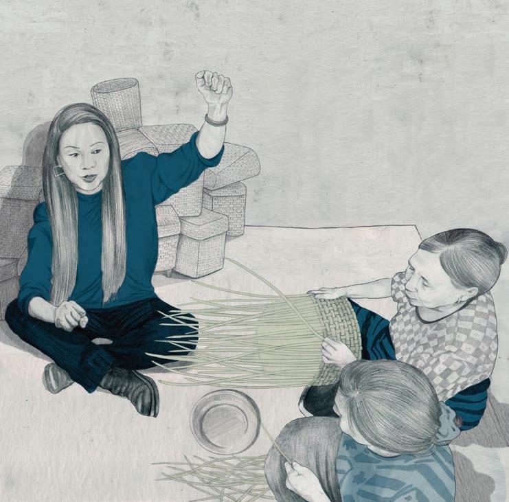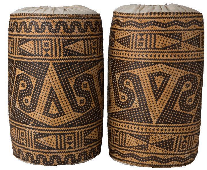 The indigenous peoples of Sarawak, Malaysia, make a living from the environment using natural materials such as rattan, bamboo and leaves to weave and plait into basketry from containers to this cylindrical bolster for sleeping.