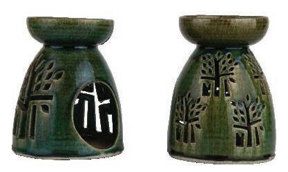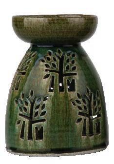 Delicate shadows are cast when candlelight passes through the die-cut logo of this exquisite ceramic oil burner, creating a romantic ambience reminiscent of the tranquil Banyan Tree Hotels and Resorts.