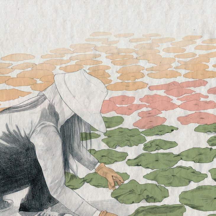 A Thai woman dries naturally dyed lotus leaves under the hot sun to minimise before they are used to make new products such as notebooks, candle holders or containers.