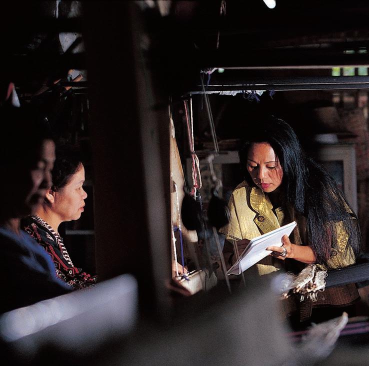 Chiang, talking to traditional weavers about designing products for Banyan Tree’s Gallery.