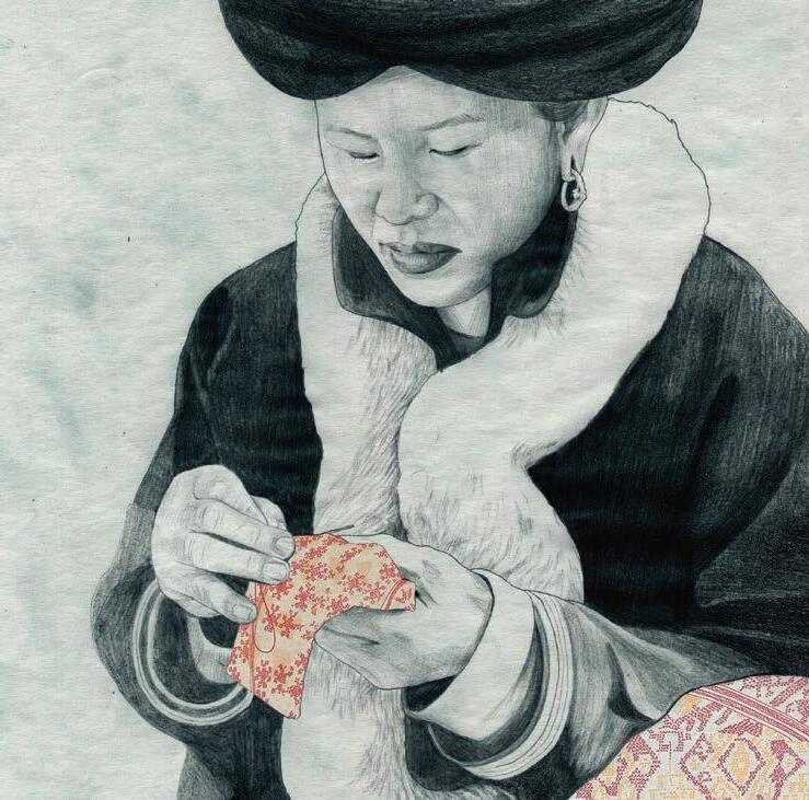 An elderly lady from the Mien minority group embroiders. Embroidery is a skill taught to children from as young as four.