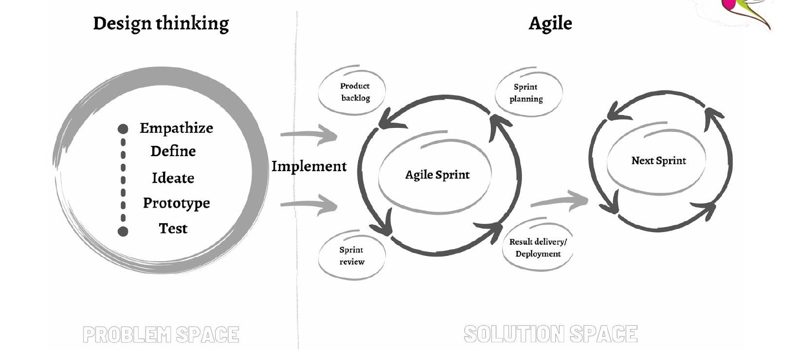 In un linguaggio più accademico, Agile è un processo per consegnare un incremento di valore entro un termine prestabilito, mentre il design thinking è un processo per trovare soluzioni a problemi non articolati.