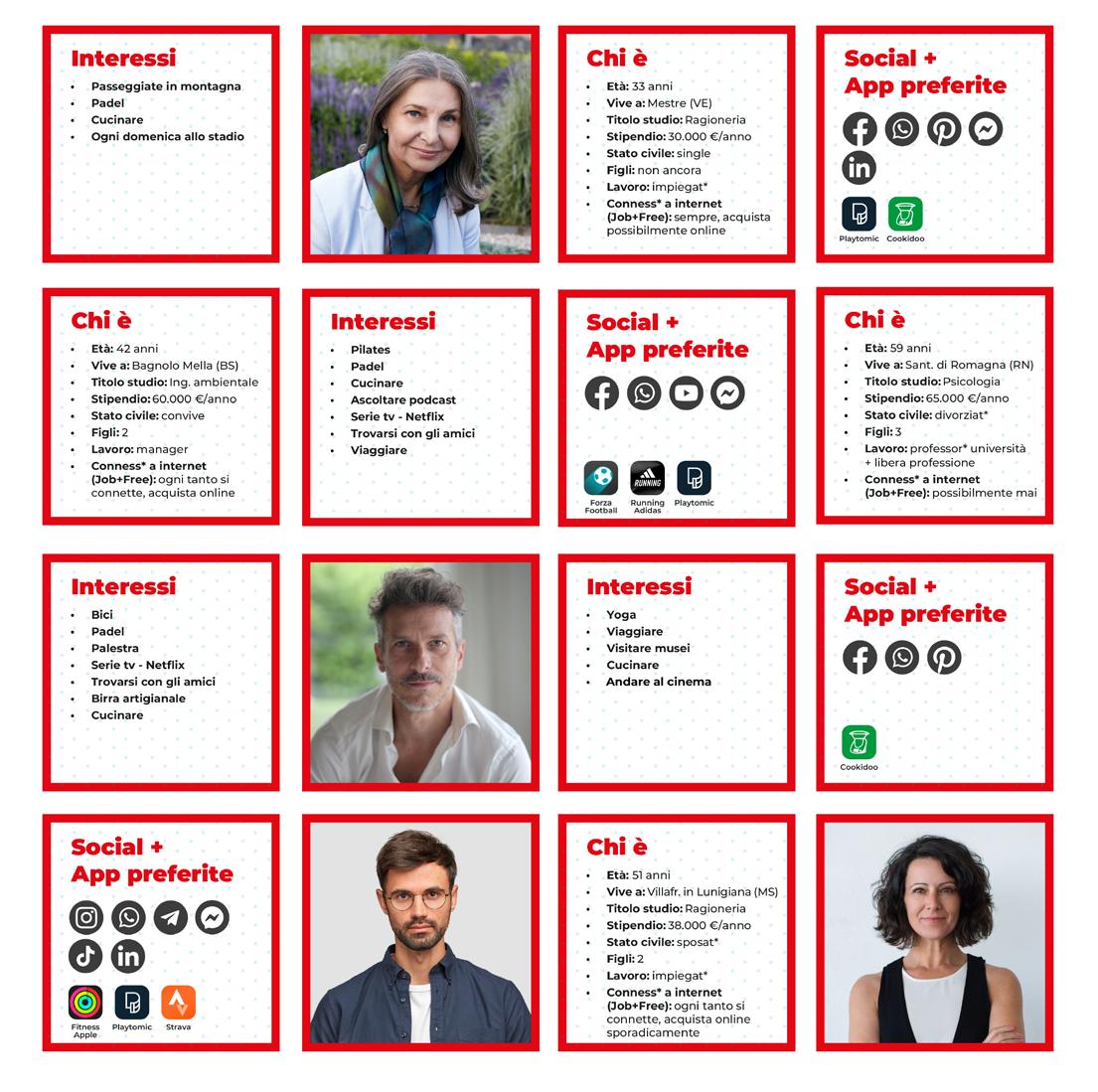 La teoria ci insegna che tramite una ricerca qualitativa e quantitativa si raccolgono informazioni che consentono di delineare le personas per il progetto. Dopo un’attenta analisi, si incrociano i dati delle due ricerche e si inizia con la loro creazione.