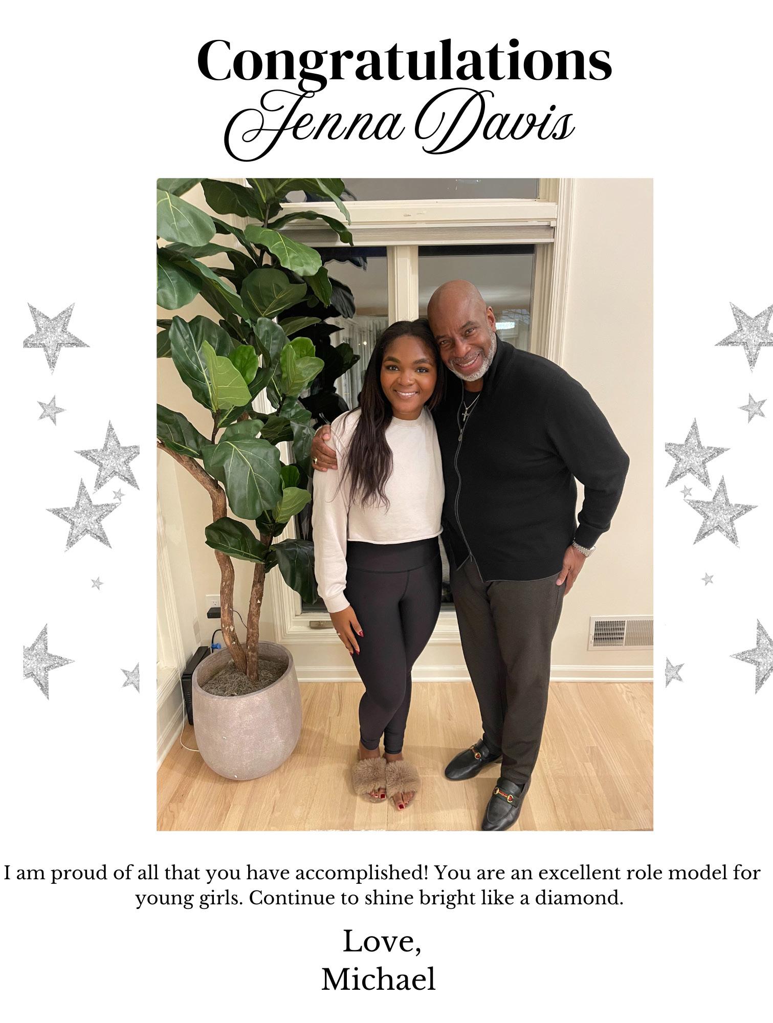 We are so proud of you and all your accomplishments. Delrecole and Charlinda Gales