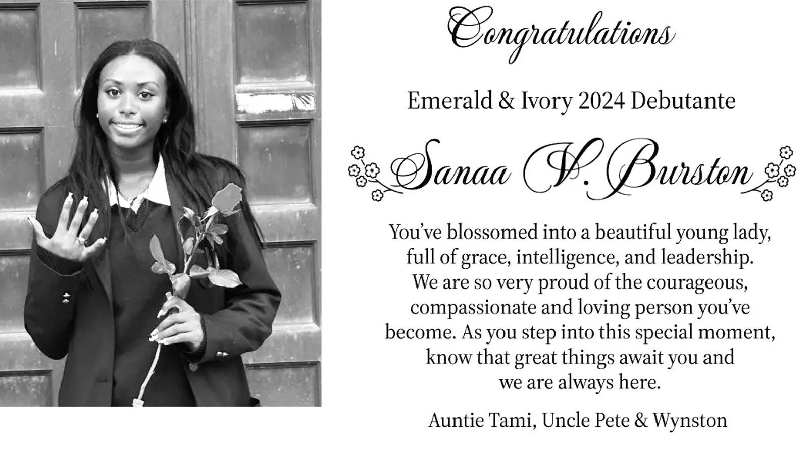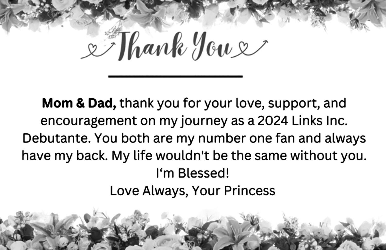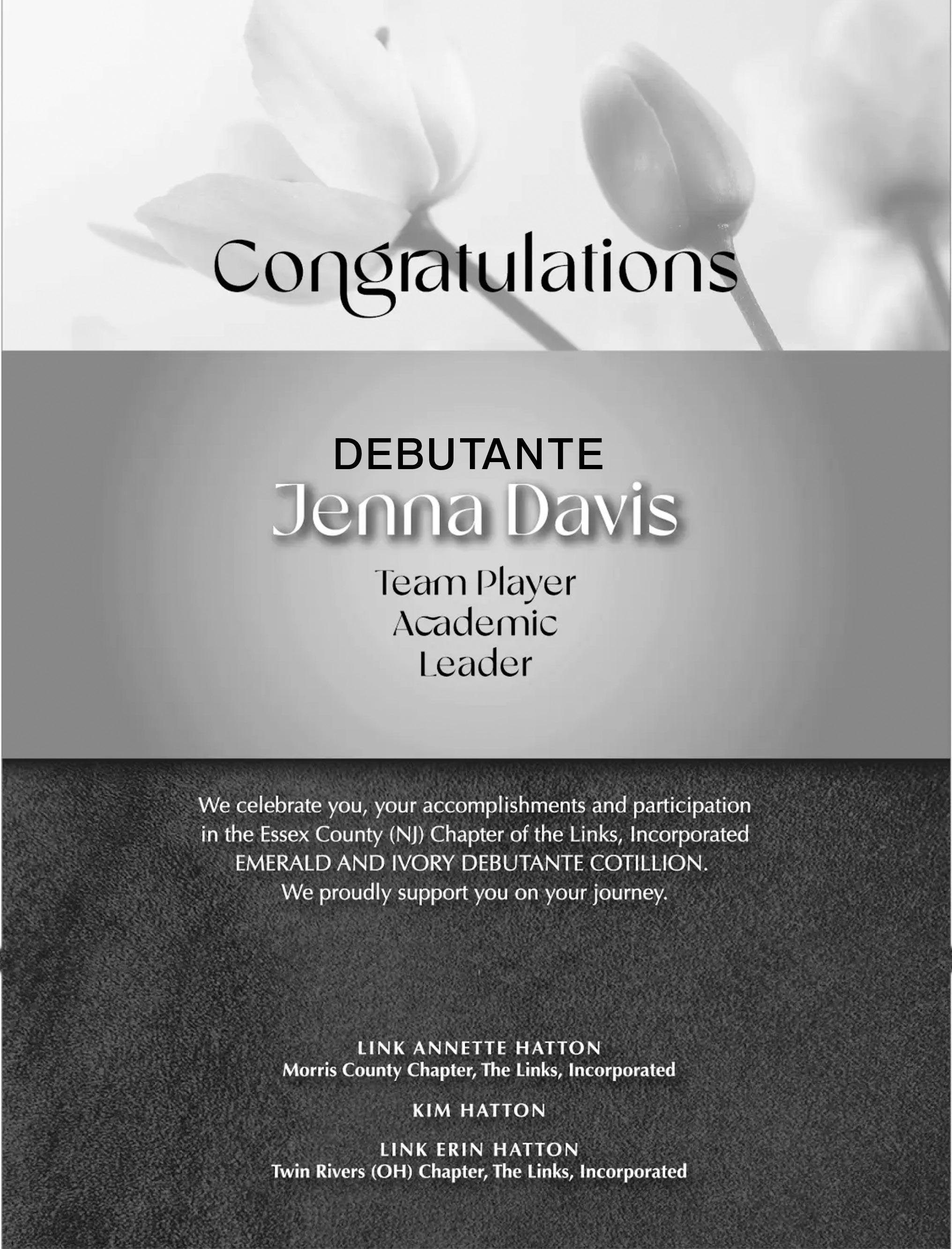 We are proud as you make your grand debut as a debutante at the 2024 Emerald and Ivy Ball for Essex County (NJ) Chapter of The Links, Incorporated.
