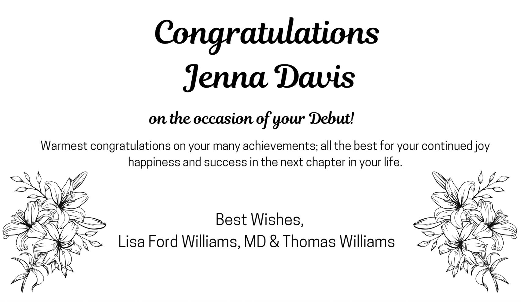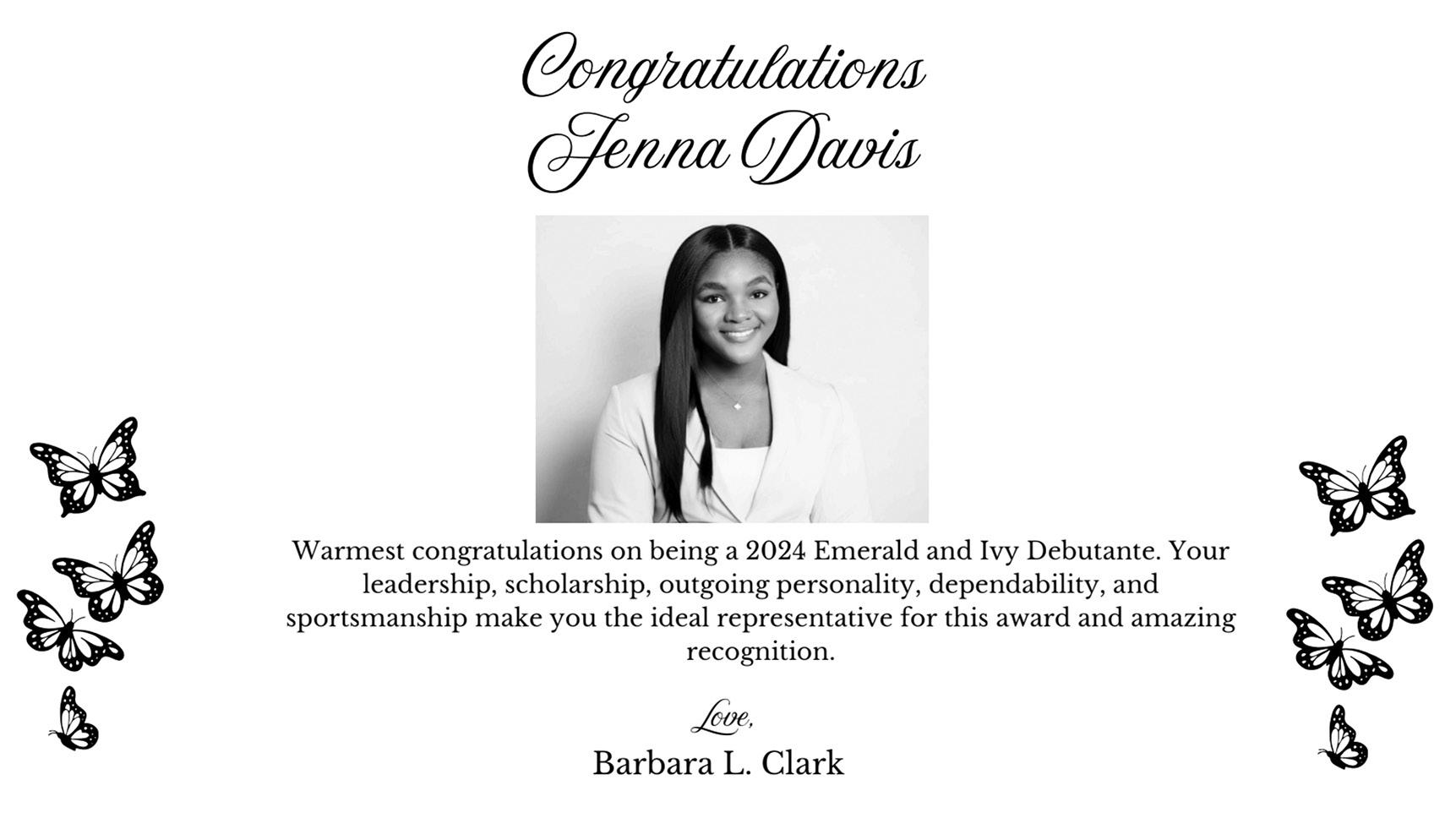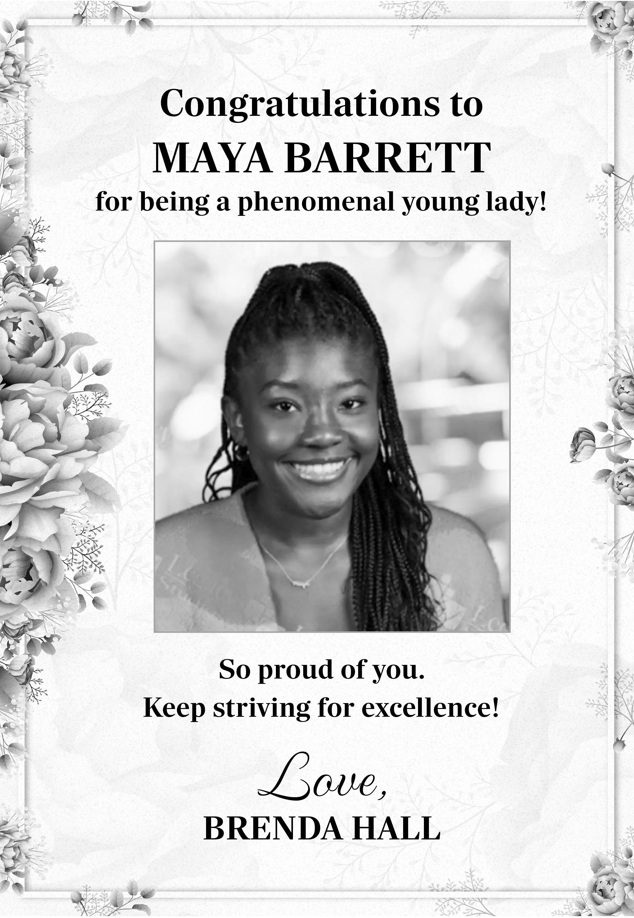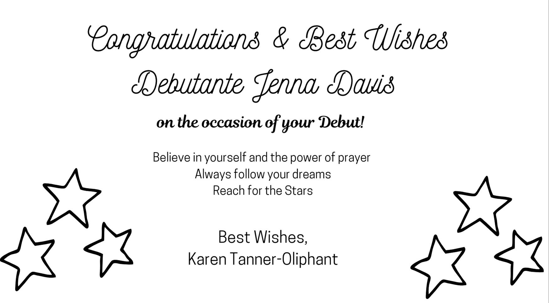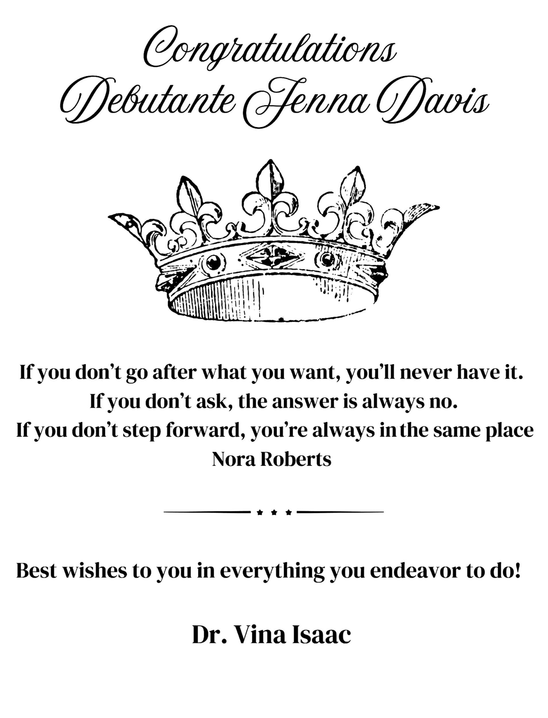 Love, Vielka Chery Congratulations Debutante Maya Barrett!