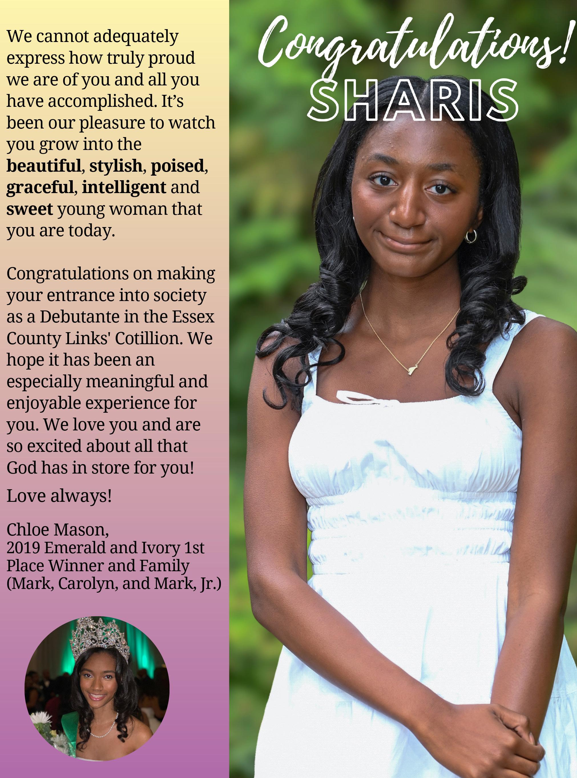 Congratulations Debutante Sharis Walthour