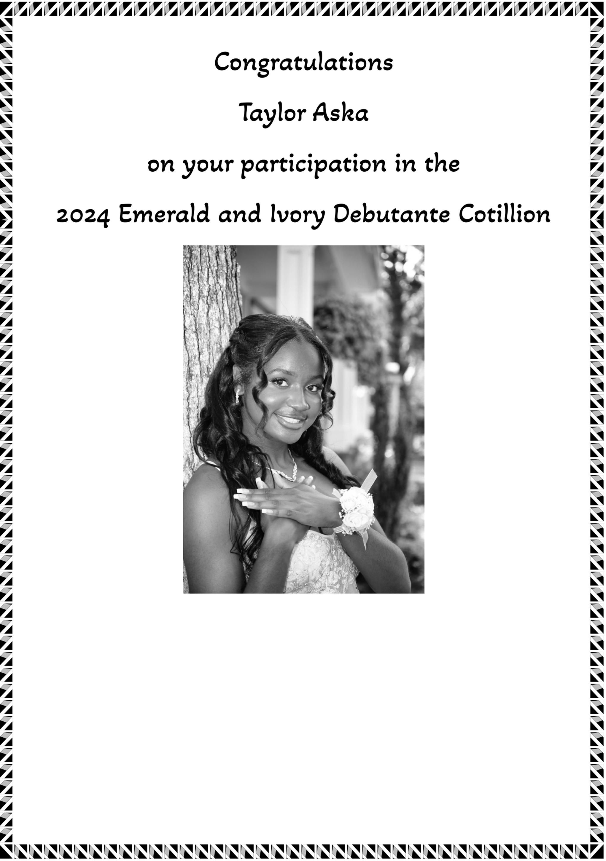 We are grateful for your unwavering support for our 2024 Emerald & Ivory Debutante Cotillion. On behalf of the Cotillion committee and our entire Chapter, we thank you for your outstanding contributions to our program. Your dedication and financial support enable us to continue serving those most in need in the communities we are privileged to serve.