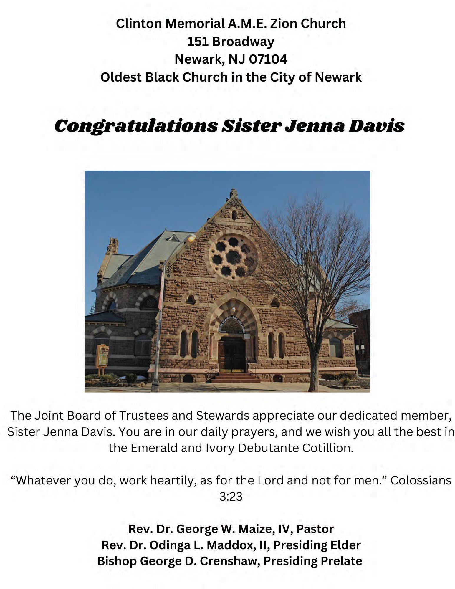 Congratulations on what I know will be a successful 15th Biennial Emerald and Ivory Debutante Cotillion! It is with great pride and joy that you gather on this special evening, to celebrate the remarkable achievements of our young women.