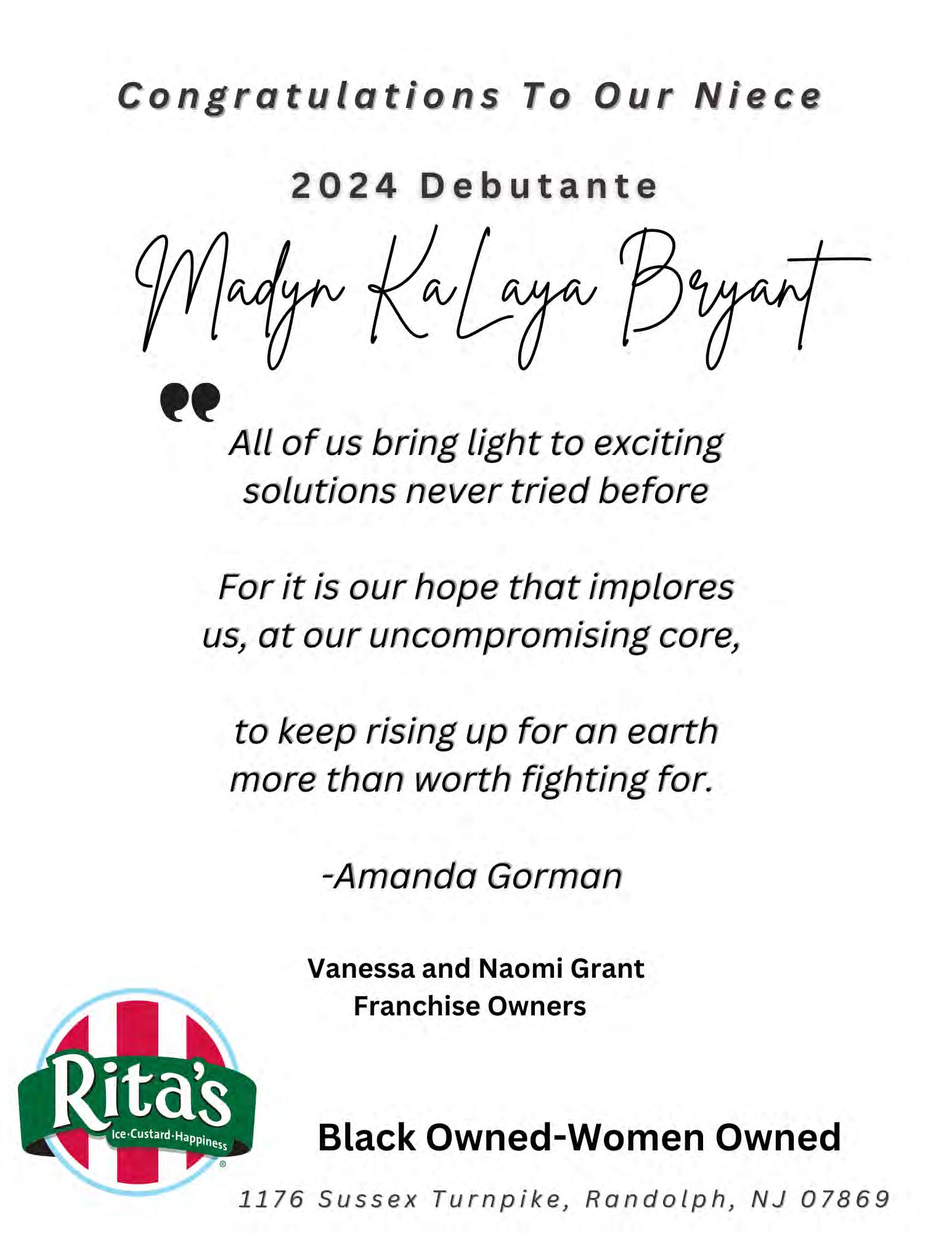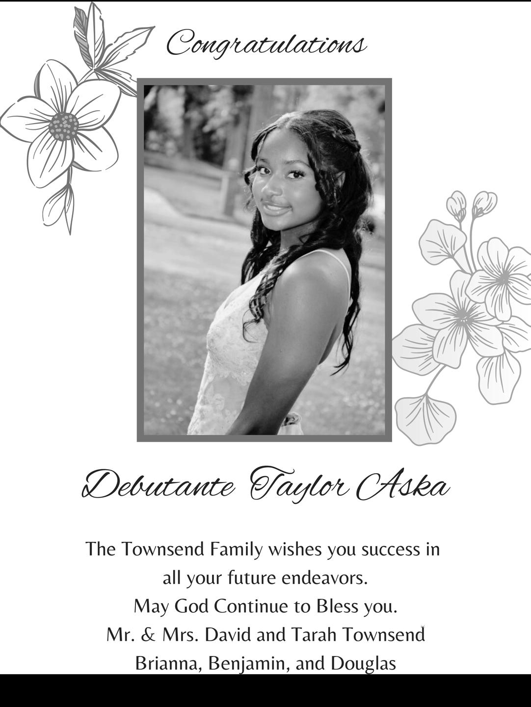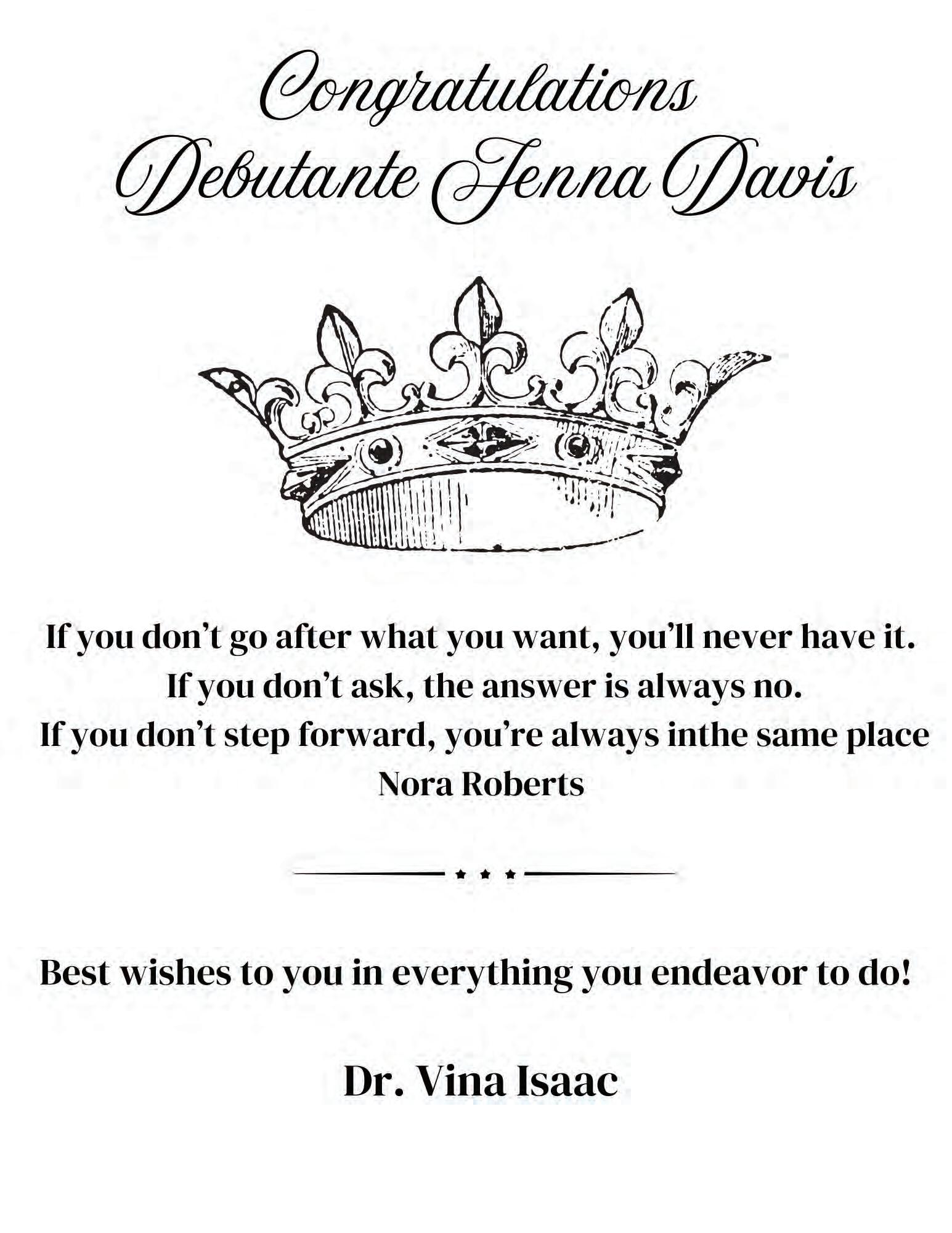 I am sorry I’m unable to join you in this celebration of elegance, growth, and potential. Let us cherish this moment and the bright futures that await these Debutantes!