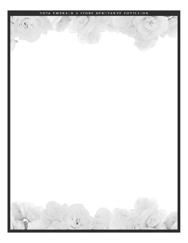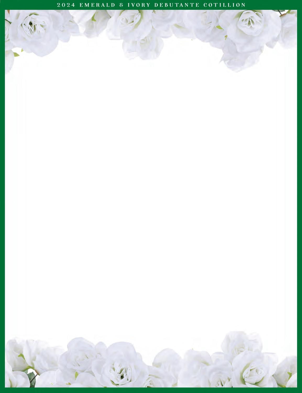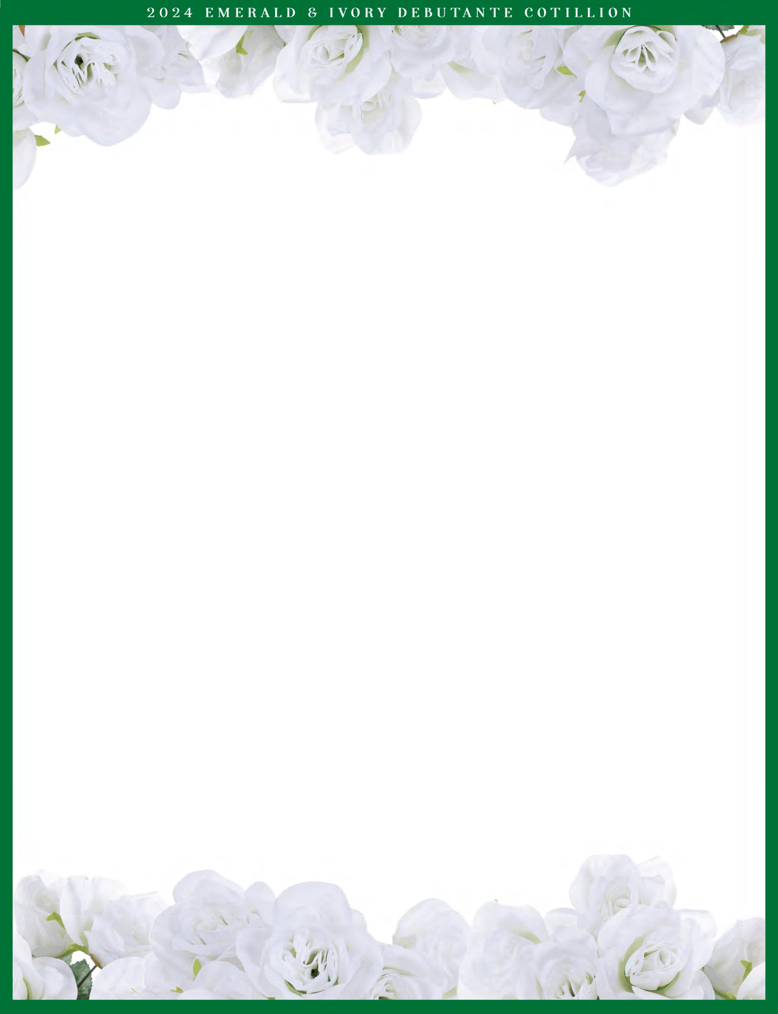 We are grateful for your unwavering support for our 2024 Emerald & Ivory Debutante Cotillion. On behalf of the Cotillion committee and our entire Chapter, we thank you for your outstanding contributions to our program. Your dedication and nancial support enable us to continue serving those most in need in the communities we are privileged to serve.