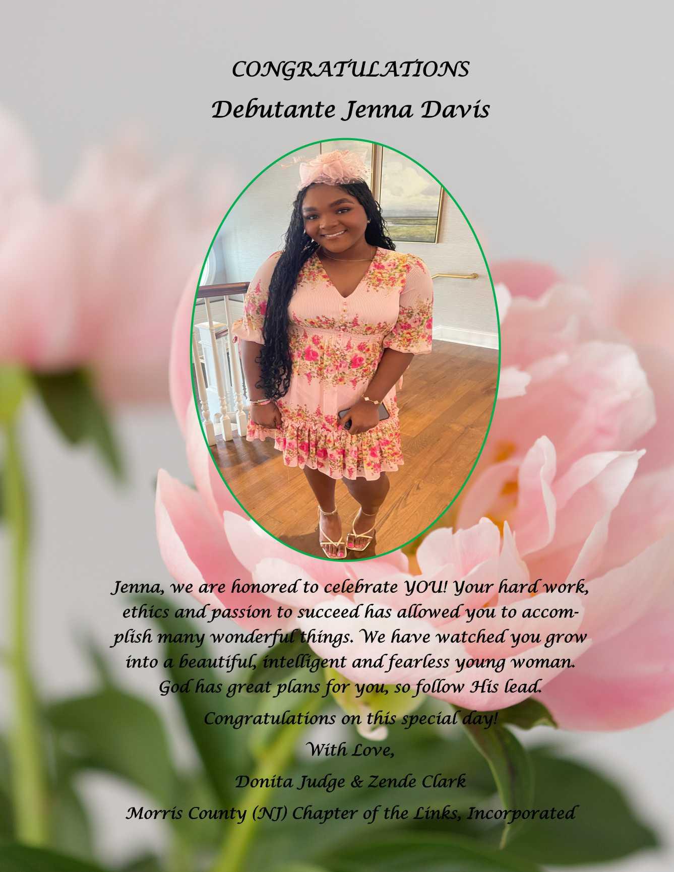 Greetings to the debutantes of the 2024 Essex County Links’ Cotillion. My name is Chloe Mason. I am your 2019 Emerald and Ivory Princess. It has been my distinct honor to wear the crown and I look forward to passing it along at the end of another wonderful debutante season.