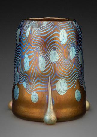 El jarrón de vidrio Loetz Argus, que presenta una decoración de ‘manchas de aceite’ metálicas e hilos de color azul plateado, sobre una rica base de castaño, ejecutada en la icónica forma de Moser, con tres pies globulares dorados, demuestra la destreza artística y técnica del autor. Se espera que el jarrón alcance un precio de entre 10.000 y 15.000 dólares cuando salga a subasta.