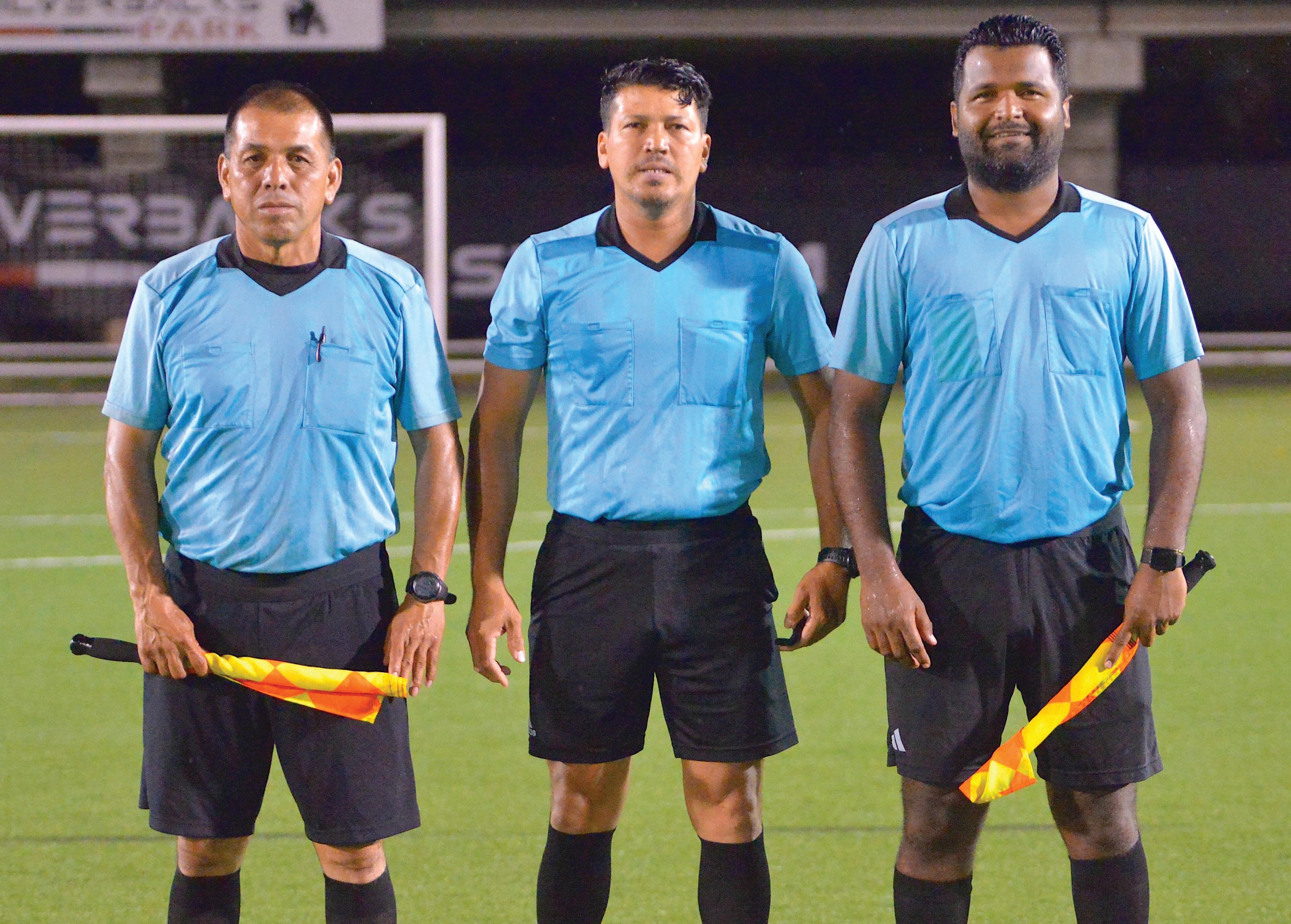 Mejía y José Kelly, tres de los árbitros más destacados en la actualidad en el fútbol amateur de Atlanta. Los tres ofrecen sus servicios como tal en la Chapín Soccer League todos los nes de semana en Silverbacks Park.
