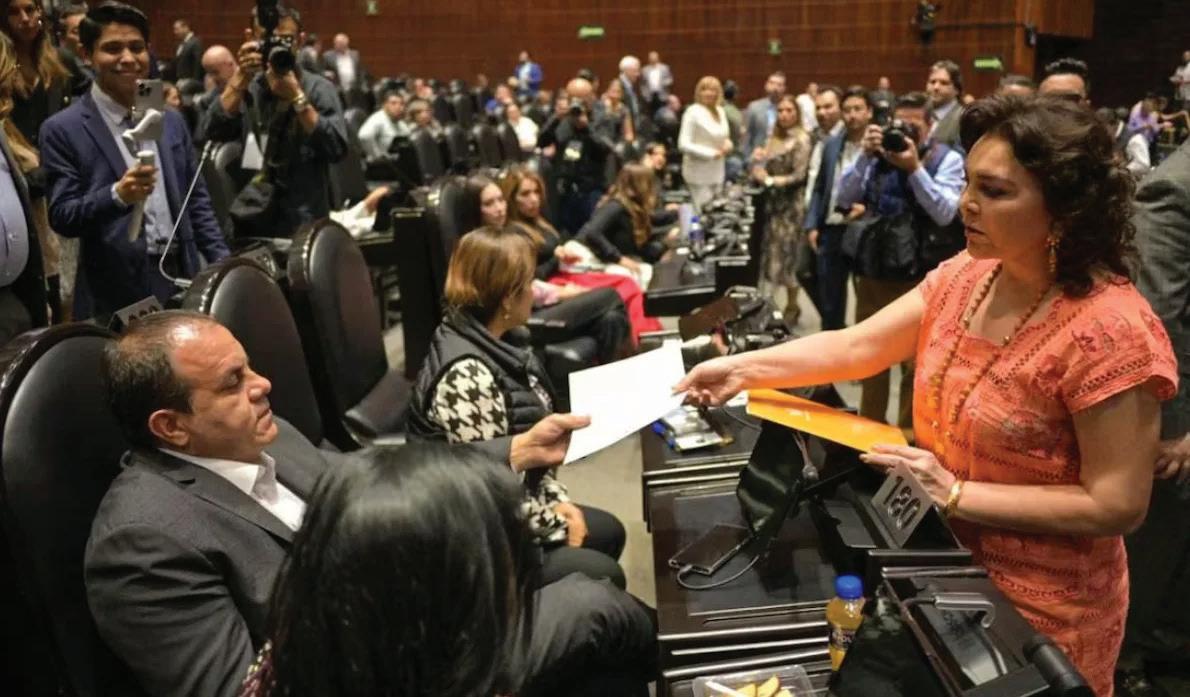 parlamentaria de Movimiento Ciudadano en San Lázaro, Ivonne Ortega, increpó al diputado de Morena Cuauhtémoc Blanco, para entregarle una carta en la que le exigió renunciar al fuero y enfrentar la denuncia en su contra por el presunto delito de abuso sexual.