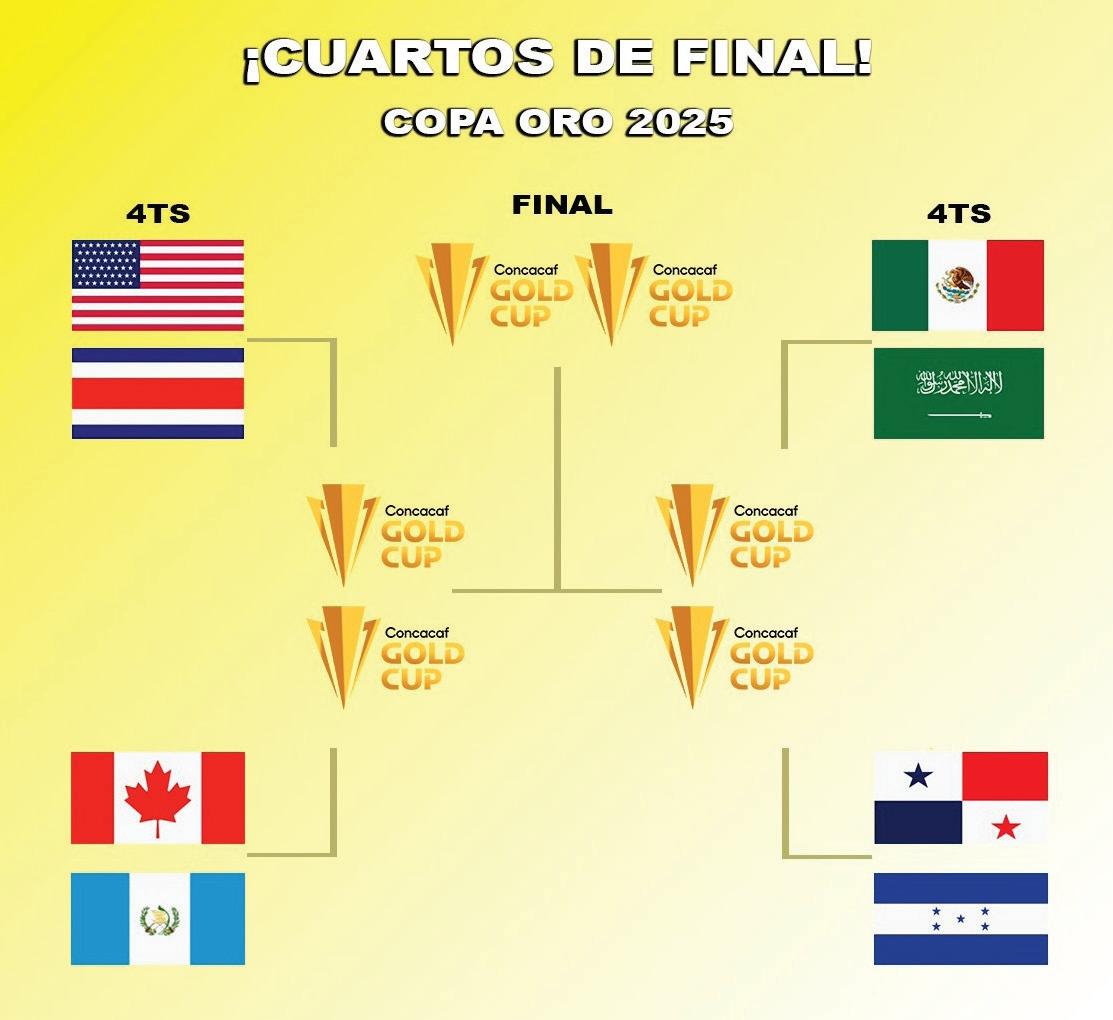 tendrá el fin de semana del 28 y 29 de junio unos cruces de cuartos de final imperdibles. Como ya es costumbre, los ojos están puestos en las selecciones más ganadoras del certamen y la siempre deseada, mediática e hipotética final entre las selecciones de México y Estados Unidos. La selección mexicana de fútbol es la vigente campeona de la Copa Oro y la máxima ganadora del certamen con 9 títulos, Estados Unidos tiene 7 y Canadá 1. Estas tres selecciones son las únicas en haber ganado el torneo.