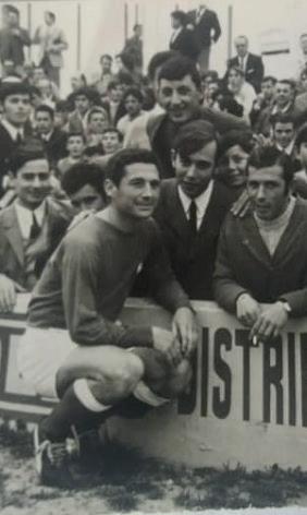 Ernesto en su época como jugador xerecista junto a la afición azulina.
