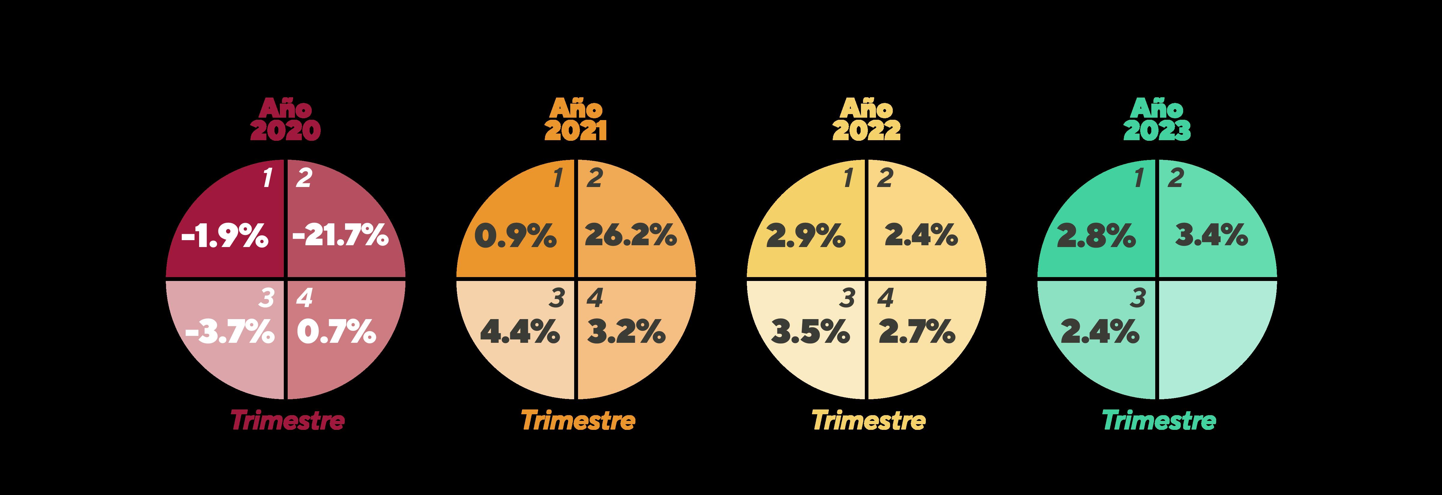 Del primero al tercer trimestre de 2023 vs mismo lapso de 2022 (desestacionalizado) Fuente: Dirección de Estadística con datos de INEGI. (2023). Consultados en enero 2024.