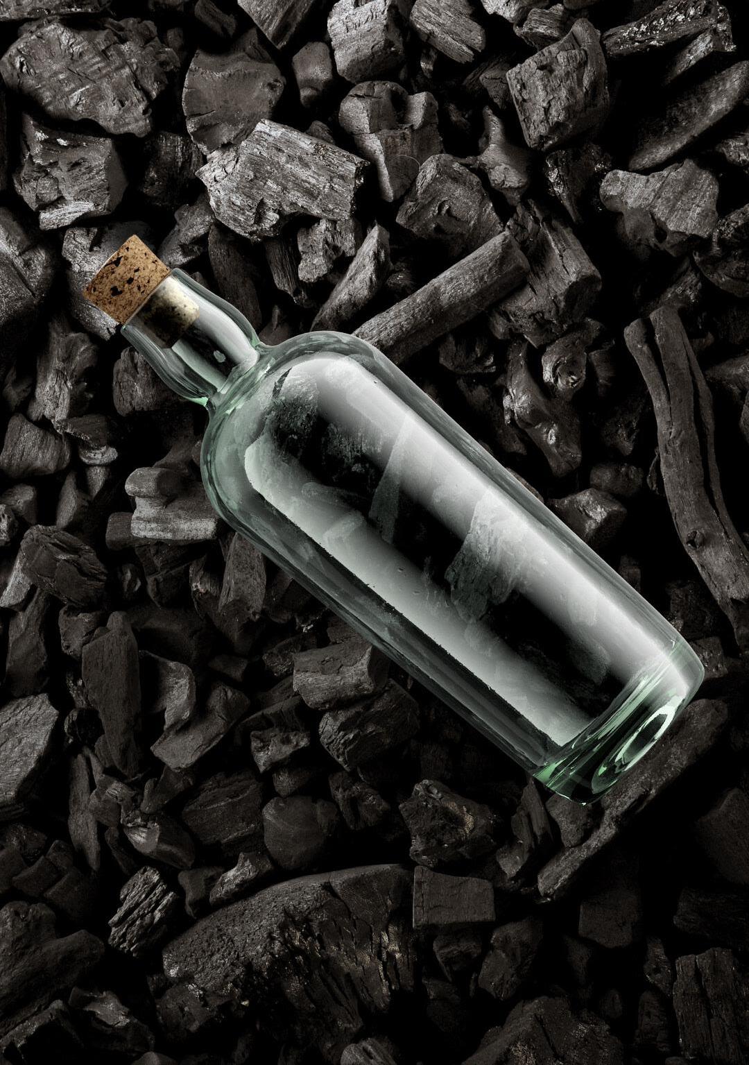 Yes, in many cases, the use of activated charcoal or other coal derivatives is key in the production of wines and spirits (e.g. the charring of the wood inside barrels). Therefore, the visual association of cork with charcoal enhances and demonstrates the story.