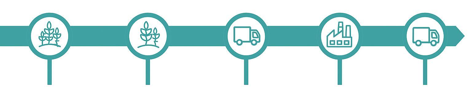 Transport of materials and packaging from suppliers to the production site.
