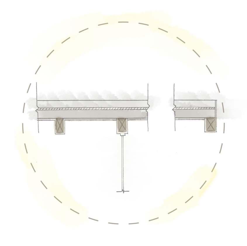 The footings are connected to the main, structural columns elevating the whole cabin off of the ground. These are connected to the main beams which are seperated from the main floors by 2 x 8s.