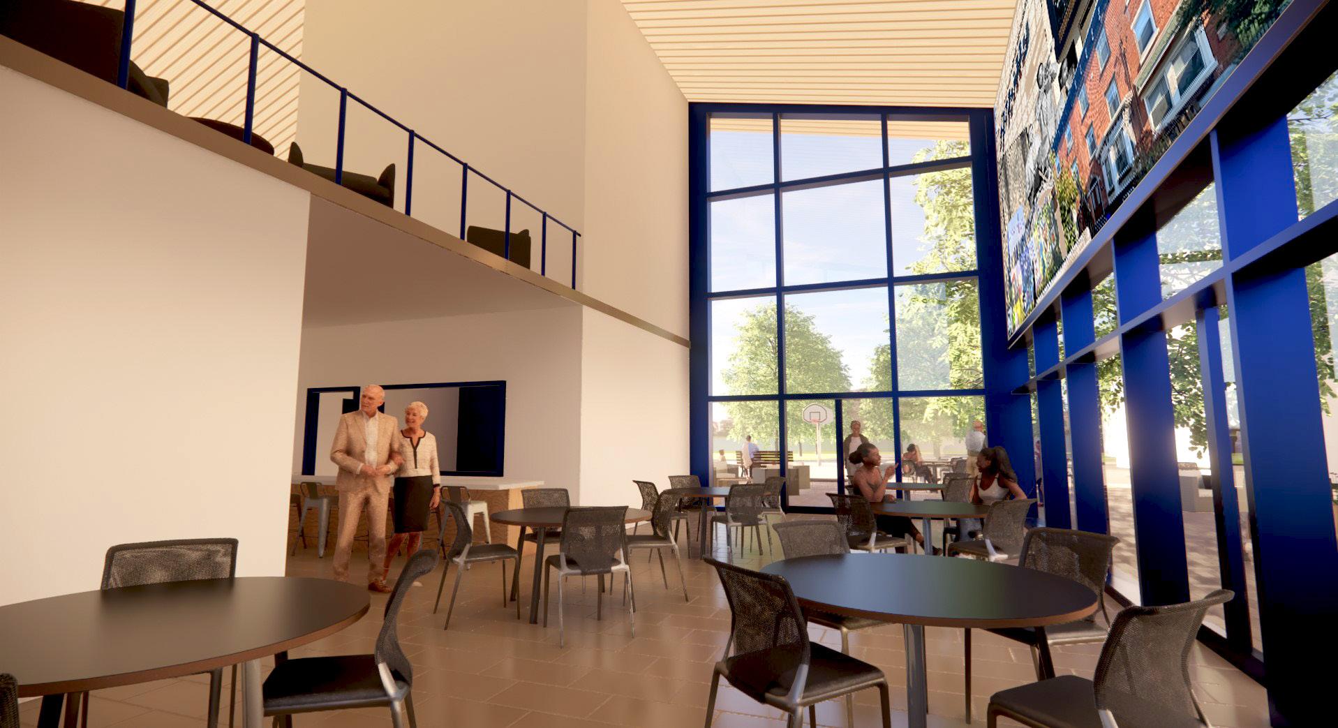 This community center — dedicated primarily for the use of seniors as well as other residents — provides a place to reminisce. It invokes feelings of nostalgia and happiness. It blends the spaces that the old and the young share through the exterior gathering space along the basketball courts to bring youth to the center and those who use it. Many of the seniors that will spend their time here have grown up in Sharswood, so seeing the current generation growing up in Sharswood will be heart warming along with the historical mural in the multi-purpose room. Elders can still be involved in the community while learning new skills in the activity space and keeping their health in check in the health care center.