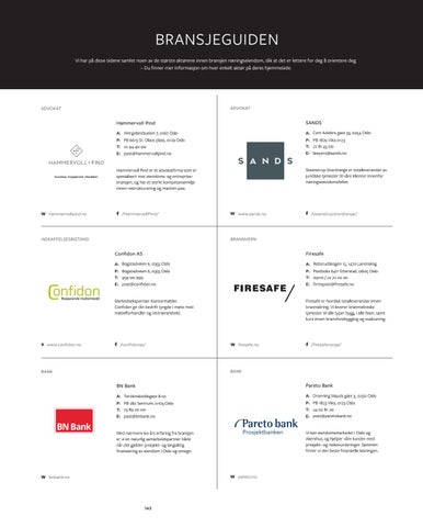 BRANSJEGUIDEN Vi har på disse sidene samlet noen av de største aktørene innen bransjen næringseiendom, slik at det er lettere for deg å o rientere deg. – Du finner mer informasjon om hver enkelt aktør på deres hjemmeside.