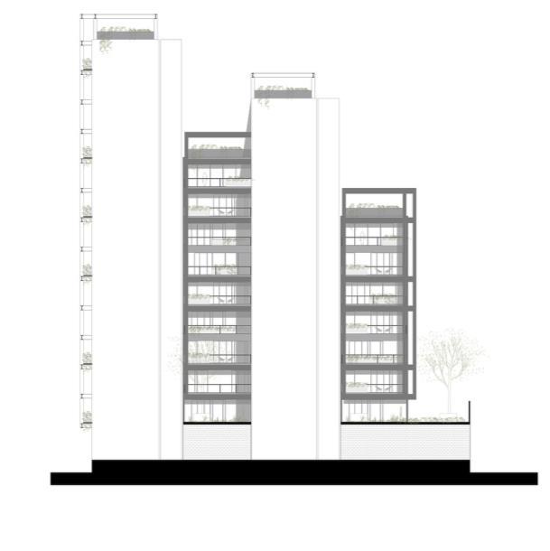 El proyecto busca eliminar el sentimiento de desapego al espacio, por lo que se ofrecen espacios amplios y abiertos, teniendo como objetivo principal, el generar terrazas y balcones jardinados, que personalizan y generen la apropiación del espacio.