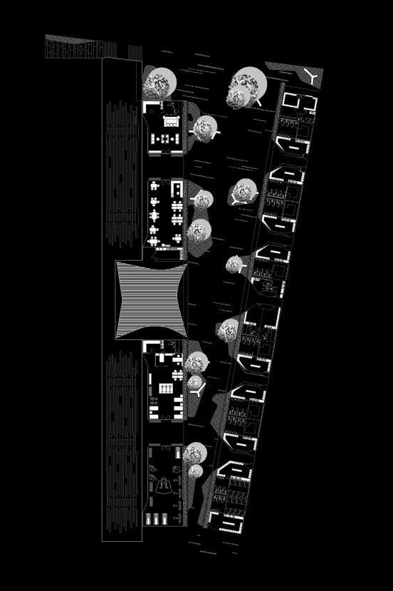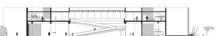 El proyecto consta de una planta baja de servicios que busca aumentar el horario de funcionamiento del comercio en la zona, de forma que se perciba como un espacio más seguro, al tener espacios abiertos al publico.