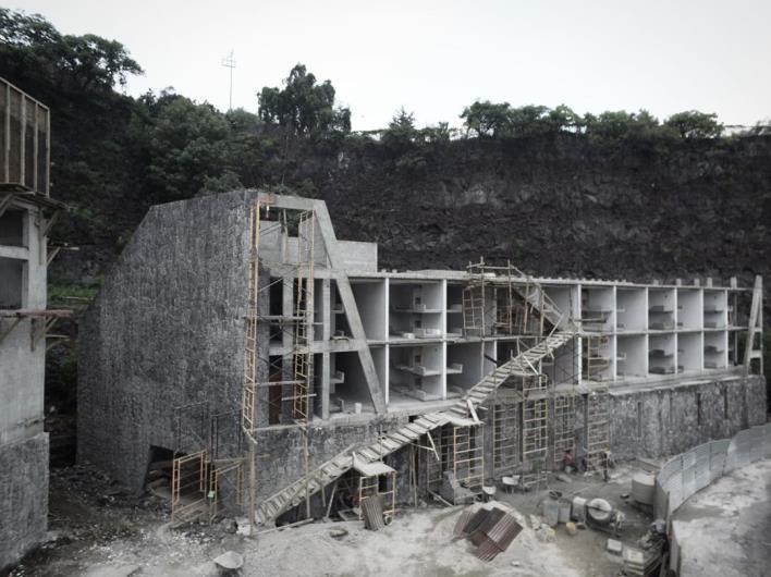 El proyecto desde su inicio presentó el reto de estar envuelto por la Cantera, un muro de 30m de piedra volcánica, tomando esto como concepto se decidió hacer un nido de piedra de donde salieran los jóvenes de fuerzas básicas, rememorando al cobijo que les brinda el estar entrenando dentro de la UNAM