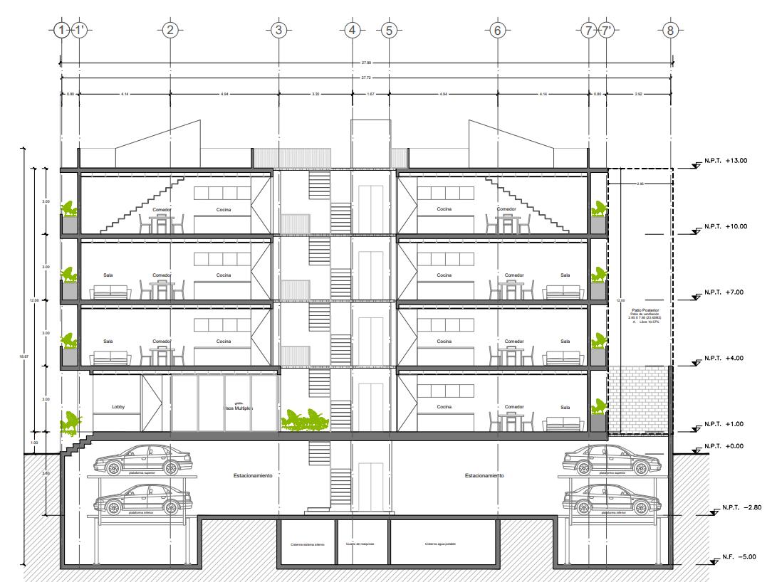 El proyecto de Covarrubias 07 consiste en un edificio multifamiliar que incluye 14 departamentos, un salón de eventos, gimnasio, terraza y 2 plazas de estacionamiento por vivienda.