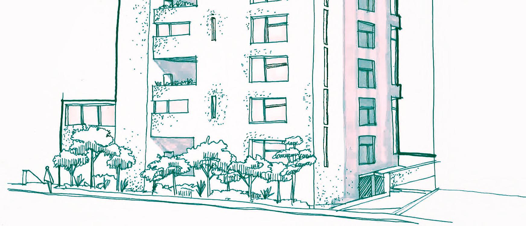 La vivienda colectiva es una mezcla de necesidades. Combinar estas dos tipologías con la intención de lograr una diversificación entre departamentos. Es una edifico permeable entre ambas realidades.
