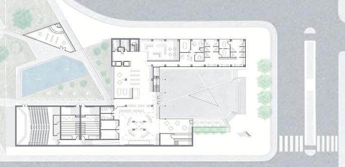 El edificio aporta a la ciudad de dos plazas, una frontal hacia la Carolina antes del ingreso. Y una posterior, conectada al futuro parque, que se muestra como un oasis de diálogo. En su interior, el usuario se cautiva con un laberinto de conexiones verticales, con especial atención al diseño en sección. Finalmente un último volúmen articula la biblioteca generando una conexión dinámica con un cine nacional.