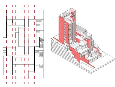 La biblioteca es una pasua en la ciudad. Un vano en el bosque de edificios, se diferencia de su contexto. Hoy en día ante la decadencia de la biblioteca por el sistema digitial, el edificio debe buscar la experiencia de aprendizaje mediante movimiento.