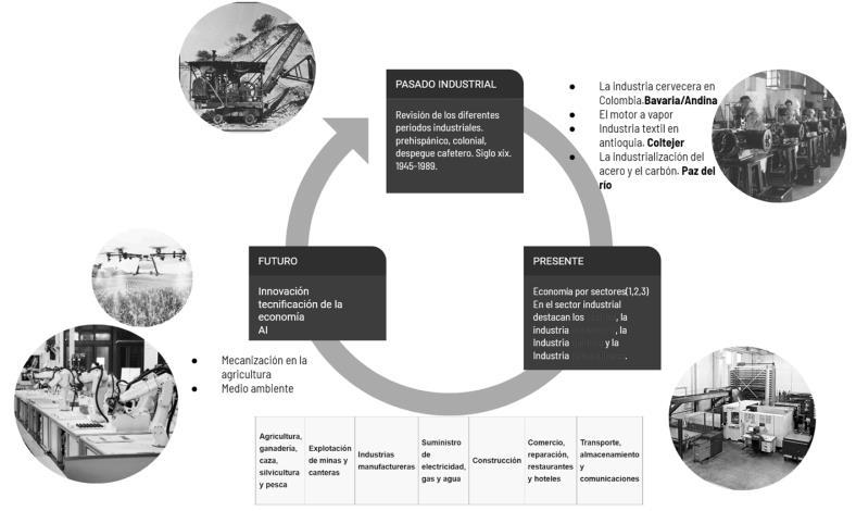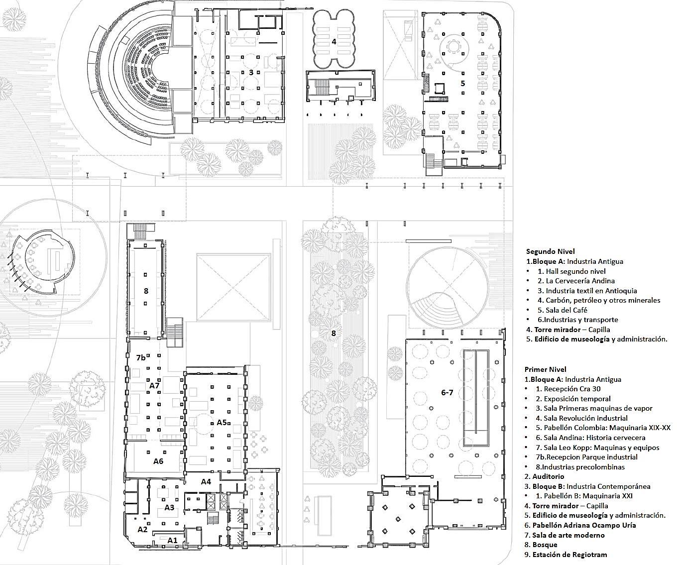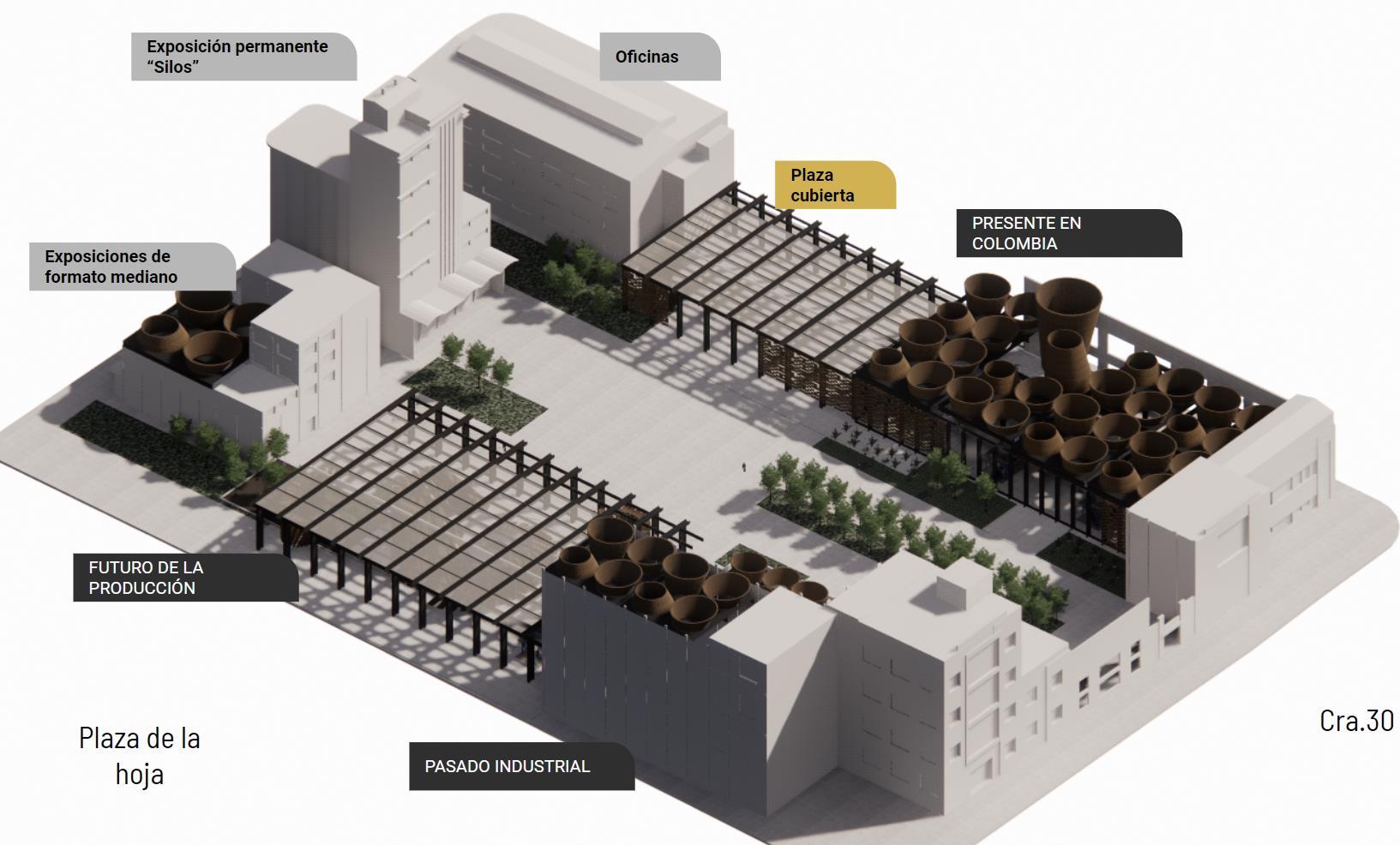 El planteamiento general propone un museo repartido en tres focos fundamentales: el pasado, presente y futuro de la industria colombiana, luego de un vasto análisis museológico, se consideró organizar esto en un flujo cíclico que posteriormente se convertiría en áreas programáticas