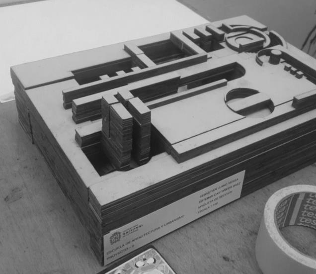 Los ejercicios de maquetación fueron fundamentales a la hora de comprender el problema a resolver, espacios de circulación y permanencia, paradigmas fundamentales y luego la relación interiorexterior, cánones oblicuos de una arquitectura abstracta y meramente compositiva La fragmentación del espacio genera las permanencias y recorridos, fluidez y movimiento mediante principios de orden