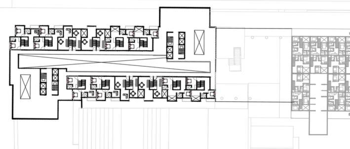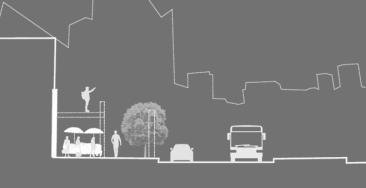 Este desarrollo hipotético explora las posibilidades de consolidar nuevas formas de espacio público por fuera del contacto del edificio con el nivel de acceso, estos elementos suspendidos extienden las posibilidades del espacio abierto de abajo, la franja suspendida como una extensión publica de usos estáticos, y la franja inferior como un auditorio abierto y permeable al igual que la casa de Florence