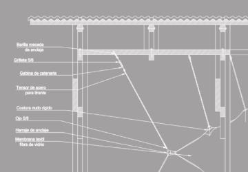 El corte evidencia la naturaleza estructural de los elementos suspendidos, las diferentes franjas se desarrollan en base al nivel en corte