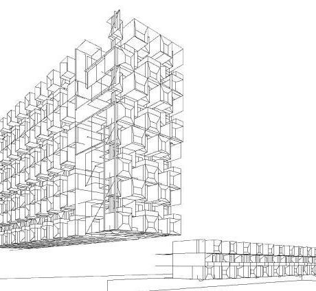 Este ejercicio expande las posibilidades anteriormente estudiadas con la barra y plataforma, expandiendo la propagación de las células en vertical, generando de esta manera una torre de vivienda dispuesta alrededor de un núcleo general La agrupación de nodos constriñe las posibilidades y presenta un desafío a la hora de ubicar las células en el lote